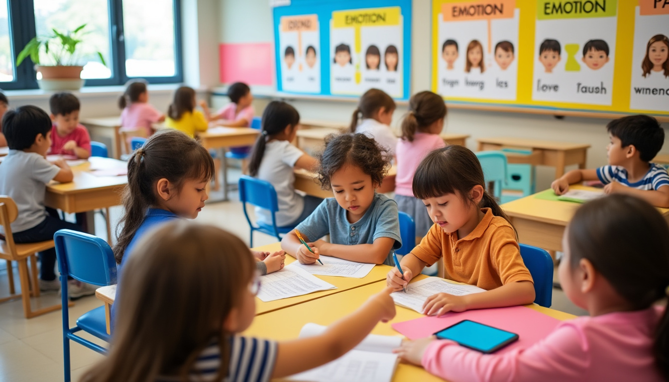 Par exemple, les enseignants peuvent introduire des activités créatives comme le tableau des émotions. En demandant aux enfants de dessiner ou de représenter des émotions sur un tableau, ils apprennent à reconnaître et à nommer ces émotions, cultivant ainsi leur lexique émotionnel. Un autre exercice consiste à lire des histoires où les personnages ont des émotions variées, et les enfants peuvent discuter ensuite de ces émotions pour mieux comprendre comment elles s’expriment dans différentes situations.